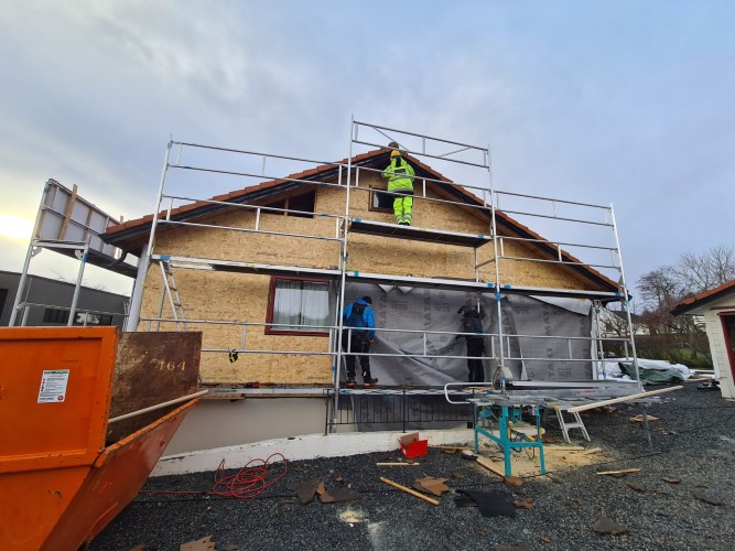 Totalrenovering: skifte av tak, vinduer, tilleggsisolasjon Rockwool Red Air. Bilder viser før, under og etter arbeid!